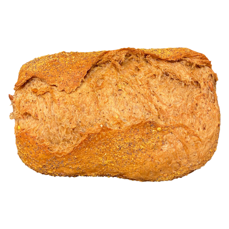 Schweizisk mel, durum, poppet byg, chiafrø, hvidtølsmalt, surdej og havsalt.